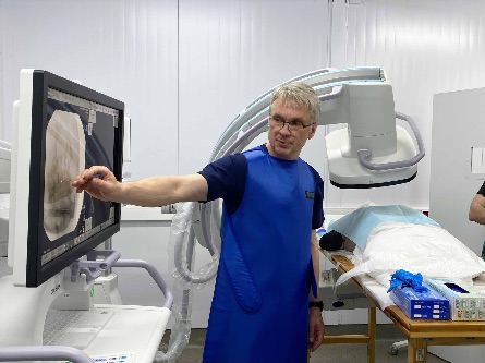 - 1 станция (рентген-навигация, биоманекен). Интерламинарная и трансфораминальная эпидуральная блокада, ИРЧА спинального ганглия на грудном уровне. 90 мин.